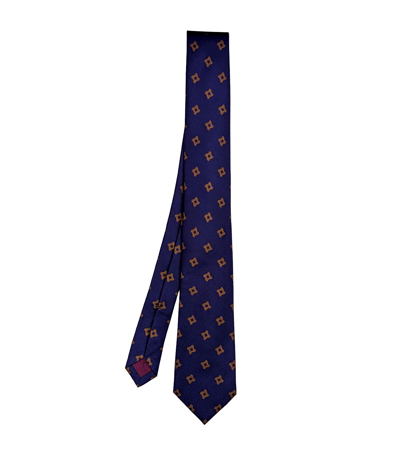 Marineblaue, gemusterte Seidenkrawatte, handgefertigt in Italien. Sie hat eine besondere texturierte Oberfläche, die diesem Accessoire Tiefe verleiht und Ihren Look etwas legerer abrundet. Genau richtig als finaler Touch für Ihre Business- oder Abendgarderobe.