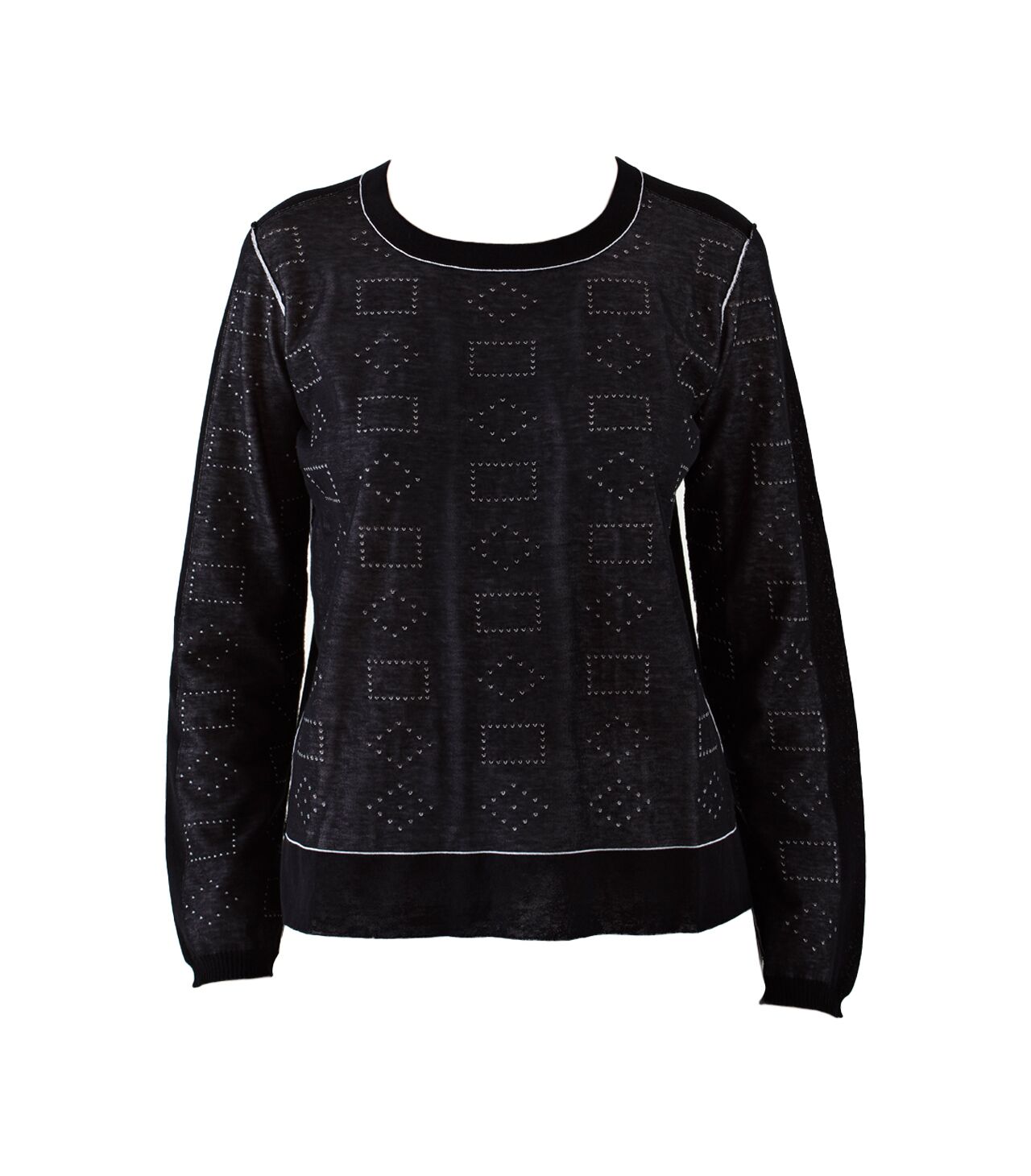 Leichter Strick-Pullover von Cividini in normaler Passform mit einem geometrischen Muster bestehend aus einer Lochung und farblich abgesetzten Rändern.